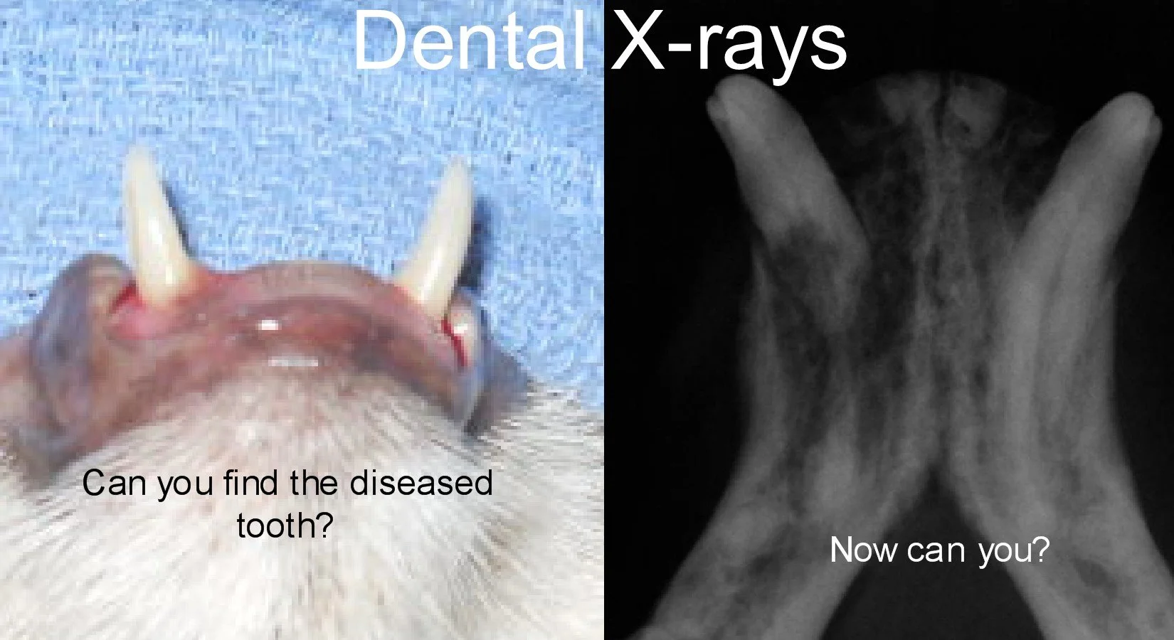 It is also not uncommon to find dental disease that is below the gumline and invisible with simple visual exams and cleanings, so to make sure severe disease is never left untreated we perform a full mouth set of dental x-rays along with every dental cleaning. We provide these x-rays at no additional charge.